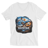 Argentina Defending Champions | La Albiceleste | White Unisex Short Sleeve V-Neck T-Shirt